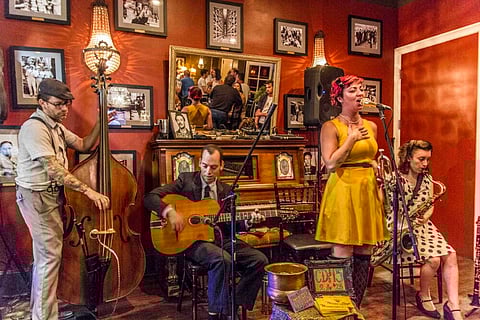 …is sophisticated and complex with diverse influences, recipes and ingredients. New Orleans is one of the world's great dining cities, best exemplified by innovative modern-Creole restaurants like Chef John Folse's R'Evolution. And yet the classic Creole restaurants, where waiters wear tuxedos, have remained au courant for centuries. Commander's Palace (1880) launched the careers of famed Chefs Paul Prudhomme and Emeril Lagasse. Dishes like quail lacquered in sugarcane-rum vinegar and stuffed with charred chili and popcorn rice boudin are artfully plated and boldly flavoured to enrapture our palates. Martinis are 25 cents. We each select three of their five signatures, "Cause that's enough," reads the menu. Arnaud's (1918) is the home of the Mardi Gras Museum. Its dizzying array of oysters includes my favourite, Bienville, baked in white wine with shrimp, mushrooms and herbs. Delicately sautéed seasonal fish is crowned with sweet Louisiana crab. Turtle soup is ambrosial, luxuriously textured and finished with sherry.