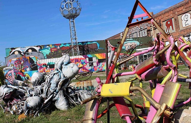 "You wanna sign my house?" A voice calls from a yellow porch. "It's only a dollar." Ms. Bell's Yellowhouse Guestbook borders a cosmic dystopia of junk art and graffiti. This is the Heidleberg Project. Houses painted in balloons and numbers line a chalk-marked street with clocks hanging from trees in a dalliance with Dali. A pink jeep is submerged in the grass near a motorboat brimming with stuffed animals. A road paved with 30, 000 sneakers is punctuated by a lone television set. It's a post-apocalyptic artscape assembled from whatever people left behind. Driving through an underpass to Lincoln Street Art Park, a spray-painted warning reads, "Danger! Reality Ahead." The scene feels like Mad Max meets Peter Max as the inner city itself is a canvas draped in colour. The Belt, a lit up downtown alley, is colourized and bustling. We duck into Standby for a cocktail.