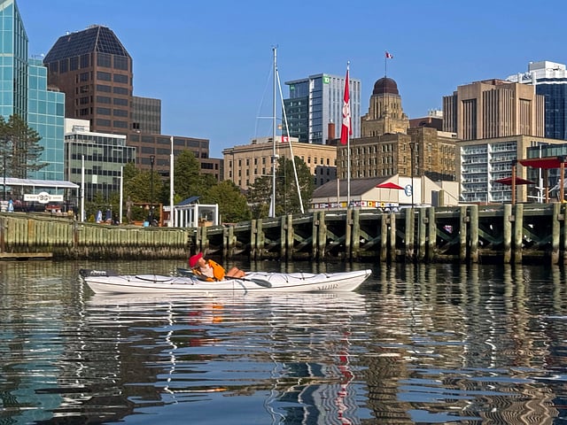 Kayaking with the sunrise along the placid Halifax Harbour, we watch boardwalk-joggers and seagulls, and the city slowly wake up. The sun sparkles off the water like shimmering Swarovski crystals, and the air, cool and invigorating, lifts our spirits as we glide back to the dock for breakfast at the Muir Hotel.