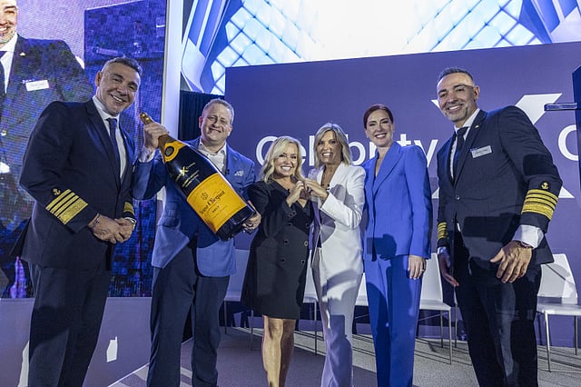 The excitement of the naming ceremony begins late afternoon with the opening experience of the City of Mount Dora Pipe Band featuring two energetic and amazing DJ's. The co-Godmothers of the ship are sisters Captain Sandy Yawn and Michelle Dunham, founder and executive director of a school for children with Autism. Always charming and articulate, Jason Liberty, President and CEO of the Royal Caribbean Group, and Laura Hodges Bethge, President of Celebrity Cruises, introduce the two Masters of the Celebrity Ascent, brothers, Captains Dimitrios and Tacos Kafetzis. Leaving nothing to chance, a Pastor and a Rabbi both give their blessings. Then, it's complete silence as we see a jeroboam-size bottle of Veuve Cliquot Champagne zip-line toward the ship and crash into the Hull. Gross Tonnage: 141,420. Length: 1073 feet. Beam: 128 feet. Draught: 27 feet. Cruising speed: 22 Knots. Welcome to our world, Celebrity Ascent. Now, the ship can glide out of the dock and sail away into the sunset.