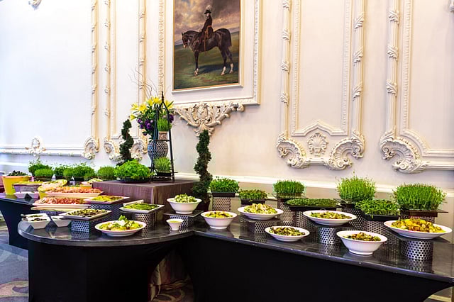 Comfortably seated in the historic and recently renovated Sovereign Ballroom in the Omni King Edward Hotel, we are welcomed with attentive service. There is a fine line between gourmet and gourmand, and it's one that I boldly walk between my table and the buffet repeatedly.