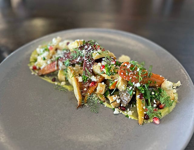 Seated at a cozy banquette, I indulge in roasted carrots, root vegetables and scrumptious pop-in-your-mouth croquettes prepared by Chef Amanda Ray of Drake Devonshire. This is flavour-forward comfort food, refined and accessible to an impressive menu of wines. The star of the show for me is a golden crisp chicken schnitzel with a light crunch. It is tender and perfectly juicy and so cluckin' good. Accompanied by rich doughy spaetzle, and accented with hints of lemon, lingonberry compote and house mustard, this generous portion is addictively devourable. Everything tastes healthy and feels nourishing. This is the product of a kitchen that cares about ingredients and the guests they are feeding. How fitting that we are in the National Arts Centre, because this is like a culinary embassy drawing chefs from across Canada to share in their craft.