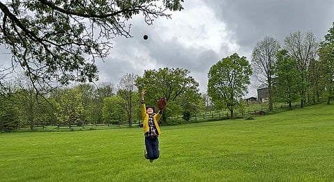 Playing catch in the country all afternoon, tossing a ball back and forth with my son—and this is his own ball that he made on his own! These kinds of moments are timeless; somewhere between a Norman Rockwell painting and a haiku. It truly is the best father-son sport.