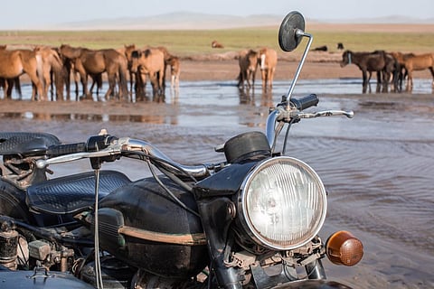 We're starting to lose daylight. My face is covered in a layer of dirt where my helmet lets in the brisk air. My hands are callusing over from gripping the throttle so tightly, as we dodge potholes and the occasional cow or horse. And it's only day one of our six-day journey. Early this morning we left the comfort of paved roads for the Mongolian steppe of Erdensant, a tiny soum not far from Ulaanbaatar. We're heading into hour-nine of today's ride, and it's slow going. Racing against the setting sun, we continue our battle against uneven terrain, the occasional stream, rocky hillsides and one too many feral dogs for my liking. We're heading towards the Mini Gobi where there is no roads, no cell phone service, and only nomadic families to rely on. No worries. What can go wrong?
