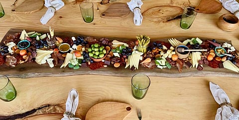 Perfectly timed, a cornucopia of local produce, cheese and meats is set on the most gorgeously carved boards that set our palates and imaginations whirling. We sample Gunn's Hill's Cabernet Merlot-soaked, cedar-aged Tipsy. Modelled after the Swiss Mutchli, its buttery notes are sealed in an essence of wine that creates quite a unique and pleasing effect. Another rich and creamy Swiss-influenced cheese is 5 Brothers, hand-crafted washed-rind cow's milk, combining Appenzeller with Gouda. I could be happy with a brick of this.