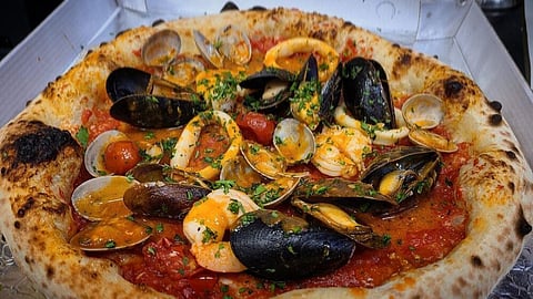 Several inventive dishes are whisked by, wafting aromatics in their wake. Ravioli stuffed with perch and almonds; steaming crisp Pizza alla Pescatora, chock full of seafood; special phyllo pastries filled with ricotta, mozzarella and salami, and served with a cheesy cream sauce; and Bocconcini di Pizza—pop-in-your-mouth, scrumptious-looking pizza bites of fior di latte, ricotta, basil, salami and prosciutto.