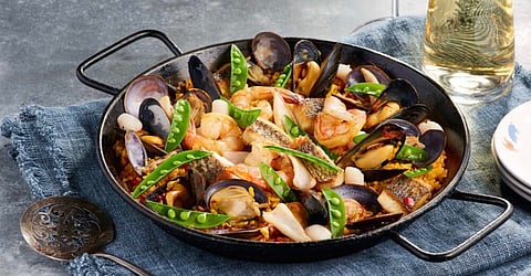 Costillas de Cordero has a nice ring to it. This rack of Spring lamb has been seasoned with a rub of Sherry and cumin, and sauced with a vibrant dark sauce which is a tango of piquillo peppers, anchovy and mint. A note to Chef Teddy Corrado: You can bottle this sauce and I will be the first of many to buy it. Now, the pieza de resistencia is placed on a rack in all its aromatic glory. The melange of ingredients cooked with special rice has absorbed the flavours of Rock Cornish Hen, quartered and roasted, chorizo, soppresado, piquillo peppers, and the unique bursts of preserved lemon and olives.
