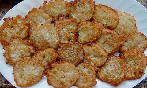 Makes about 5 dozen. Can be served with apple sauce, sour cream, etc. [How about a little caviar or smoked salmon?