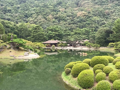 2. Ritsurin Garden is one of the most beautiful in Japan. Manicured trees, twisting branches, lush pillows of green and heart-shaped azaleas peacefully beset the base of the mountain. Footpaths and bridges meander over small hills to a teahouse. Here we sip matcha and gaze at carp in the still pond around us.
